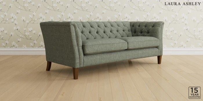 6.12.1 Buy Chatsworth Button Back by Laura Ashley 3 Seater Sofa Bainton Sage Green Straight Mid - Teak from the Laura Ashley online shop Click here to use our website with more accessibility support, for example screen readers