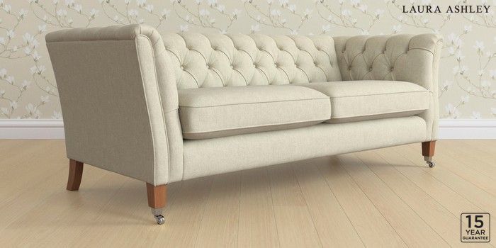 6.12.1 Buy Chatsworth Button Back by Laura Ashley 3 Seater Sofa Kinsham Natural Straight Chrome Castor - Teak from the Laura Ashley online shop Click here to use our website with more accessibility support, for example screen readers