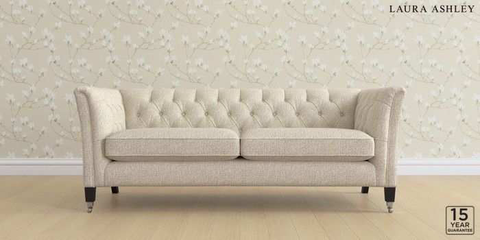 6.12.1 Buy Chatsworth Button Back by Laura Ashley 3 Seater Sofa Borwick Natural Straight Chrome Castor - Black from the Laura Ashley online shop Click here to use our website with more accessibility support, for example screen readers