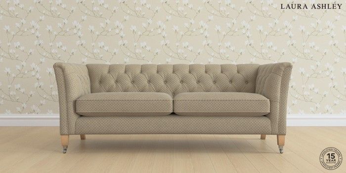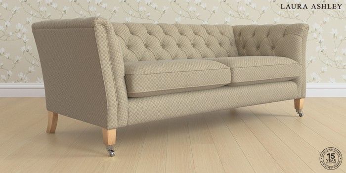 6.12.1 Buy Chatsworth Button Back by Laura Ashley 3 Seater Sofa Chequers Hazelnut Natural Straight Chrome Castor - Light Oak from the Laura Ashley online shop Click here to use our website with more accessibility support, for example screen readers