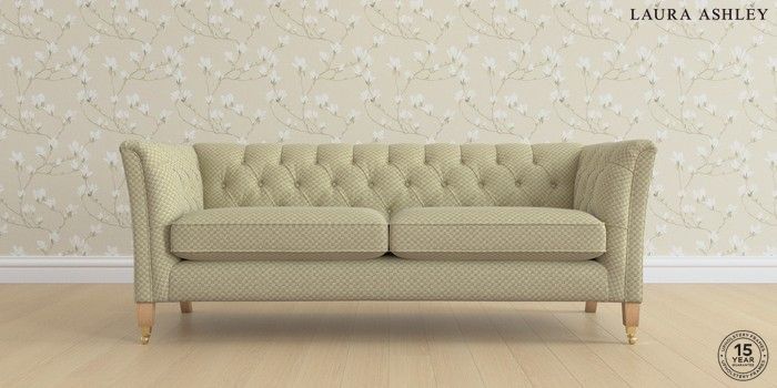 6.12.1 Buy Chatsworth Button Back by Laura Ashley 3 Seater Sofa Chequers Hedgerow Green Straight Brass Castor - Light Oak from the Laura Ashley online shop Click here to use our website with more accessibility support, for example screen readers