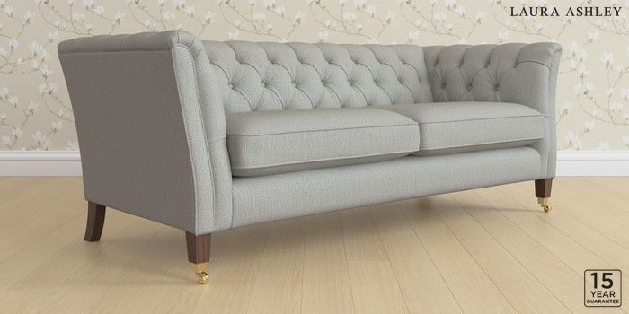 6.12.1 Buy Chatsworth Button Back by Laura Ashley 3 Seater Sofa Edwin Herringbone Pale Steel Grey Straight Brass Castor - Chestnut from the Laura Ashley online shop Click here to use our website with more accessibility support, for example screen readers