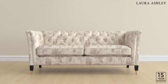 6.12.1 Buy Chatsworth Button Back by Laura Ashley 3 Seater Sofa Gosford Weave Dusky Plum Purple Straight Brass Castor - Black from the Laura Ashley online shop Click here to use our website with more accessibility support, for example screen readers