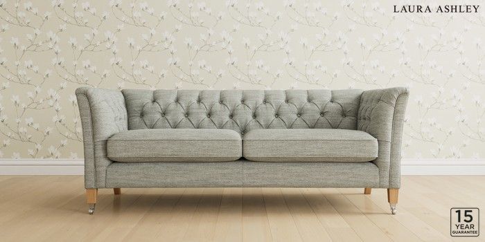 6.12.1 Buy Chatsworth Button Back by Laura Ashley 3 Seater Sofa Harley Dove Grey Straight Chrome Castor - Light Oak from the Laura Ashley online shop Click here to use our website with more accessibility support, for example screen readers