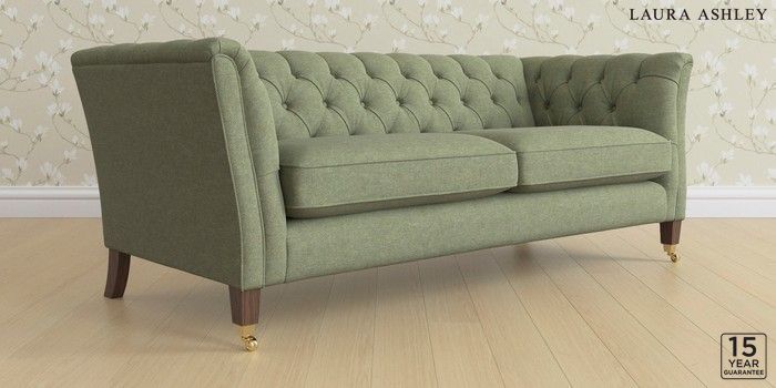 6.12.1 Buy Chatsworth Button Back by Laura Ashley 3 Seater Sofa Harley Moss Green Straight Brass Castor - Chestnut from the Laura Ashley online shop Click here to use our website with more accessibility support, for example screen readers
