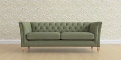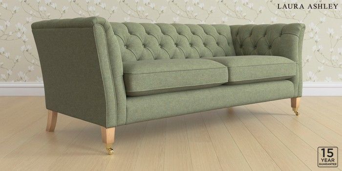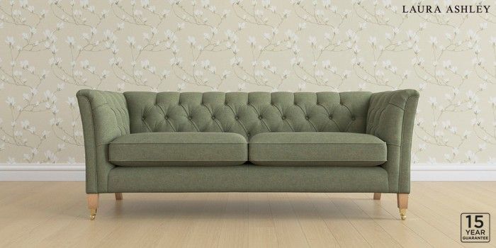 6.12.13 Buy Chatsworth Button Back by Laura Ashley 3 Seater Sofa Harley Moss Green Straight Brass Castor - Light Oak from the Laura Ashley online shop Click here to use our website with more accessibility support, for example screen readers