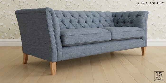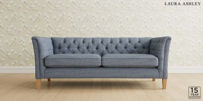 6.12.1 Buy Chatsworth Button Back by Laura Ashley 3 Seater Sofa Harley Seaspray Blue Straight Mid - Light Oak from the Laura Ashley online shop Click here to use our website with more accessibility support, for example screen readers