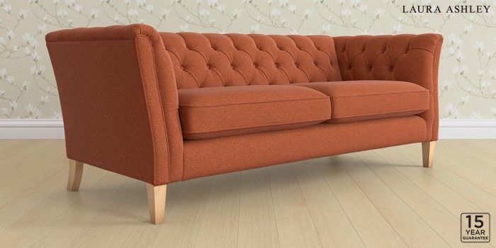 6.12.13 Buy Chatsworth Button Back by Laura Ashley 3 Seater Sofa Harley Terracotta Orange Straight Mid - Light Oak from the Laura Ashley online shop Click here to use our website with more accessibility support, for example screen readers