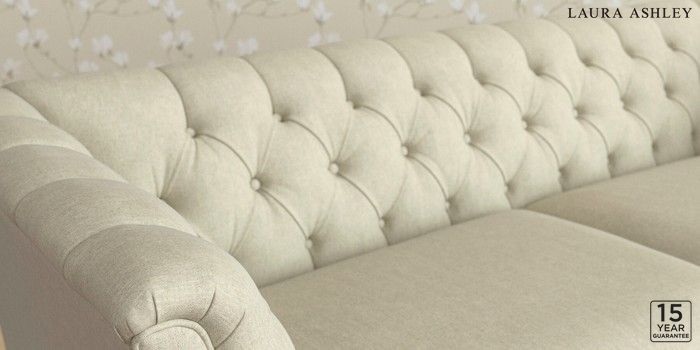 6.12.1 Buy Chatsworth Button Back by Laura Ashley 3 Seater Sofa Kinsham Natural Straight Mid - Teak from the Laura Ashley online shop Click here to use our website with more accessibility support, for example screen readers