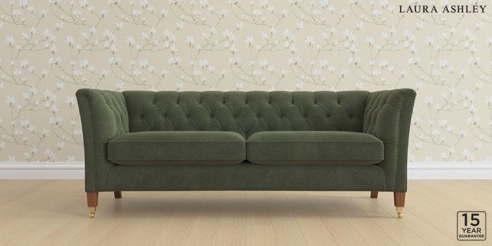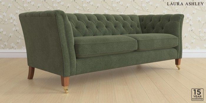 6.12.1 Buy Chatsworth Button Back by Laura Ashley 3 Seater Sofa Lundar Chenille Ivy Green Straight Brass Castor - Teak from the Laura Ashley online shop Click here to use our website with more accessibility support, for example screen readers