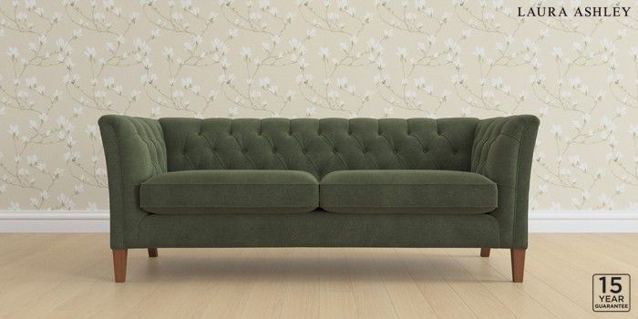 6.12.13 Buy Chatsworth Button Back by Laura Ashley 3 Seater Sofa Lundar Chenille Ivy Green Straight Mid - Teak from the Laura Ashley online shop Click here to use our website with more accessibility support, for example screen readers
