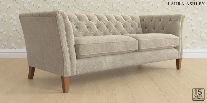 6.12.1 Buy Chatsworth Button Back by Laura Ashley 3 Seater Sofa Lundar Chenille Truffle Natural Straight Mid - Teak from the Laura Ashley online shop Click here to use our website with more accessibility support, for example screen readers