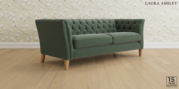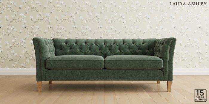 6.12.1 Buy Chatsworth Button Back by Laura Ashley 3 Seater Sofa Nantmor Fern Green Straight Mid - Light Oak from the Laura Ashley online shop Click here to use our website with more accessibility support, for example screen readers