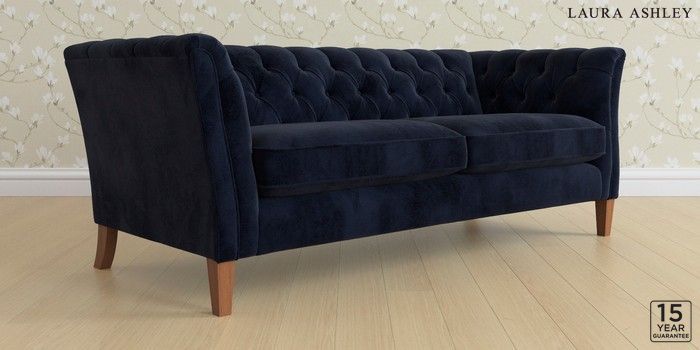 6.12.1 Buy Chatsworth Button Back by Laura Ashley 3 Seater Sofa Orla Midnight Navy Straight Mid - Teak from the Laura Ashley online shop Click here to use our website with more accessibility support, for example screen readers