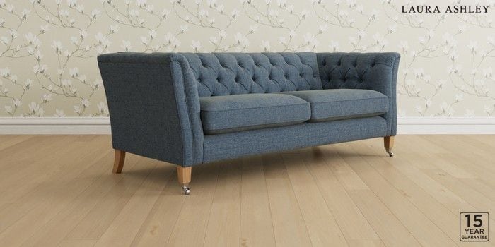 6.12.13 Buy Chatsworth Button Back by Laura Ashley 3 Seater Sofa Orla Seaspray Blue Straight Chrome Castor - Light Oak from the Laura Ashley online shop Click here to use our website with more accessibility support, for example screen readers