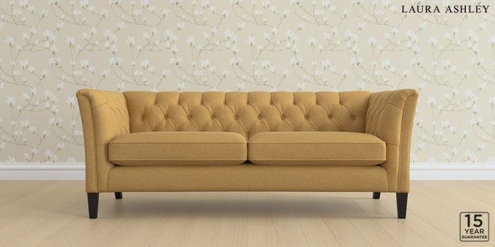 6.12.13 Buy Chatsworth Button Back by Laura Ashley 3 Seater Sofa Peyton Ochre Yellow Straight Mid - Black from the Laura Ashley online shop Click here to use our website with more accessibility support, for example screen readers