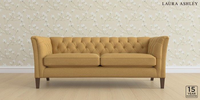 6.12.1 Buy Chatsworth Button Back by Laura Ashley 3 Seater Sofa Peyton Ochre Yellow Straight Mid - Chestnut from the Laura Ashley online shop Click here to use our website with more accessibility support, for example screen readers