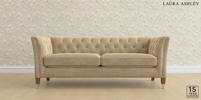 6.12.1 Buy Chatsworth Button Back by Laura Ashley 3 Seater Sofa Peyton Sable Natural Straight Brass Castor - Teak from the Laura Ashley online shop Click here to use our website with more accessibility support, for example screen readers