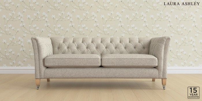 6.12.1 Buy Chatsworth Button Back by Laura Ashley 3 Seater Sofa Tichwell Stone Natural Straight Chrome Castor - Light Oak from the Laura Ashley online shop Click here to use our website with more accessibility support, for example screen readers