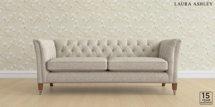 6.12.1 Buy Chatsworth Button Back by Laura Ashley 3 Seater Sofa Tichwell Stone Natural Straight Chrome Castor - Teak from the Laura Ashley online shop Click here to use our website with more accessibility support, for example screen readers