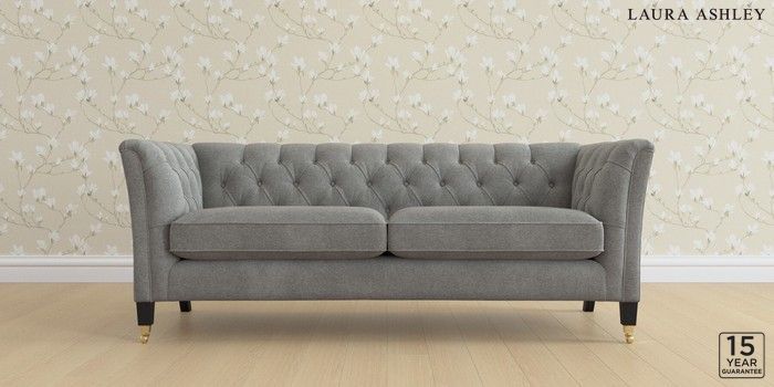 6.12.1 Buy Chatsworth Button Back by Laura Ashley 3 Seater Sofa Wooton Dark Steel Grey Straight Brass Castor - Black from the Laura Ashley online shop Click here to use our website with more accessibility support, for example screen readers