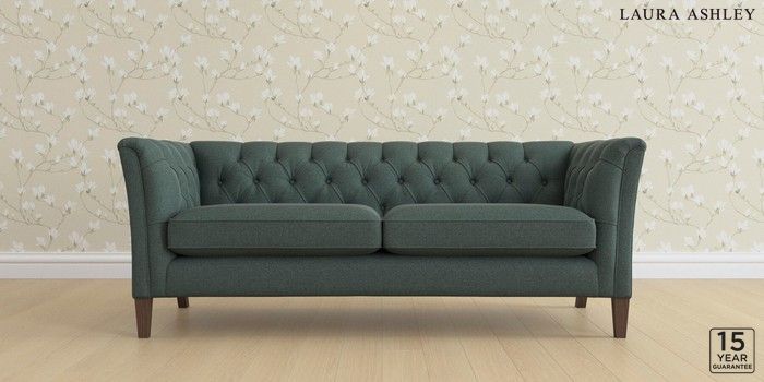 6.12.1 Buy Chatsworth Button Back by Laura Ashley 3 Seater Sofa Wooton Forest Green Straight Mid - Chestnut from the Laura Ashley online shop Click here to use our website with more accessibility support, for example screen readers