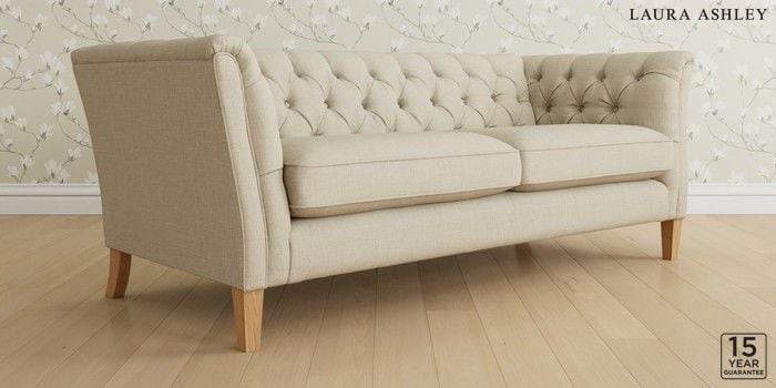 6.12.1 Buy Chatsworth Button Back by Laura Ashley 3 Seater Sofa Wooton Natural Straight Mid - Light Oak from the Laura Ashley online shop Click here to use our website with more accessibility support, for example screen readers