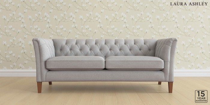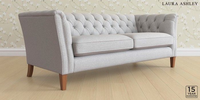 6.12.1 Buy Chatsworth Button Back by Laura Ashley 3 Seater Sofa Wooton Pale Steel Grey Straight Mid - Teak from the Laura Ashley online shop Click here to use our website with more accessibility support, for example screen readers