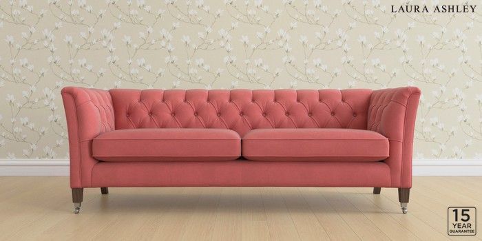 6.12.1 Buy Chatsworth Button Back by Laura Ashley 4 Seater Sofa Ailsworth Old Rose Pink Straight Chrome Castor - Chestnut from the Laura Ashley online shop Click here to use our website with more accessibility support, for example screen readers
