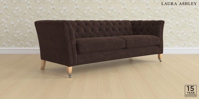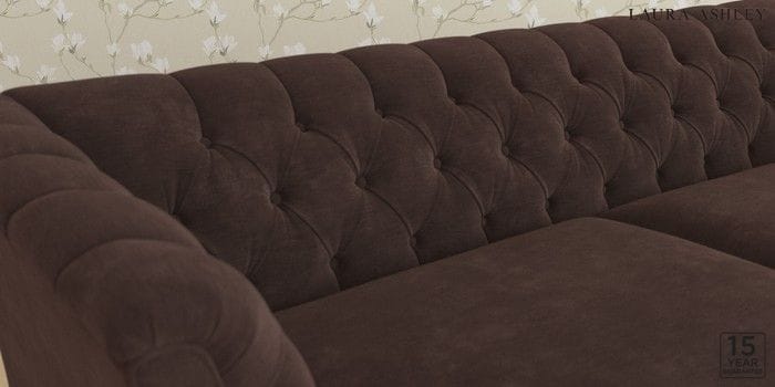 6.12.1 Buy Chatsworth Button Back by Laura Ashley 4 Seater Sofa Alwyn Velvet Chocolate Brown Straight Chrome Castor - Light Oak from the Laura Ashley online shop Click here to use our website with more accessibility support, for example screen readers