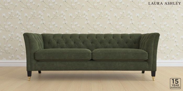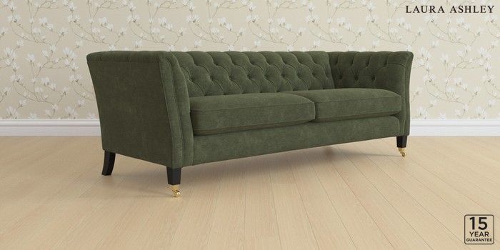 7.0.3 Buy Chatsworth Button Back by Laura Ashley 4 Seater Sofa Alwyn Velvet Ivy Green Straight Brass Castor - Black from the Laura Ashley online shop Click here to use our website with more accessibility support, for example screen readers