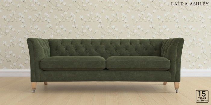 6.12.13 Buy Chatsworth Button Back by Laura Ashley 4 Seater Sofa Alwyn Velvet Ivy Green Straight Chrome Castor - Light Oak from the Laura Ashley online shop Click here to use our website with more accessibility support, for example screen readers