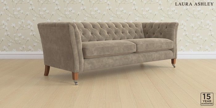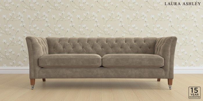 6.12.1 Buy Chatsworth Button Back by Laura Ashley 4 Seater Sofa Alwyn Velvet Truffle Natural Straight Chrome Castor - Teak from the Laura Ashley online shop Click here to use our website with more accessibility support, for example screen readers
