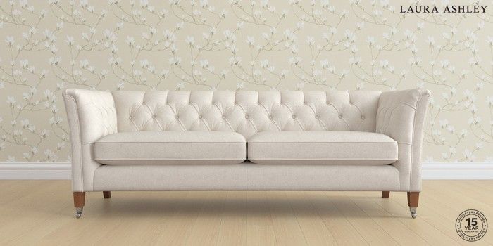 7.2.6 Buy Chatsworth Button Back by Laura Ashley 4 Seater Sofa Anneliese Oyster Natural Straight Chrome Castor - Teak from the Laura Ashley online shop Click here to use our website with more accessibility support, for example screen readers