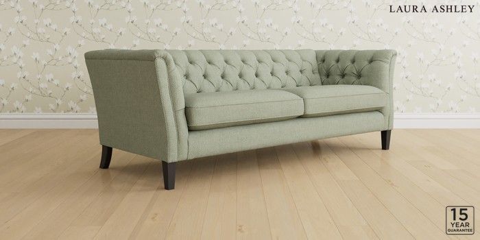 6.12.1 Buy Chatsworth Button Back by Laura Ashley 4 Seater Sofa Anneliese Sage Green Straight Mid - Black from the Laura Ashley online shop Click here to use our website with more accessibility support, for example screen readers