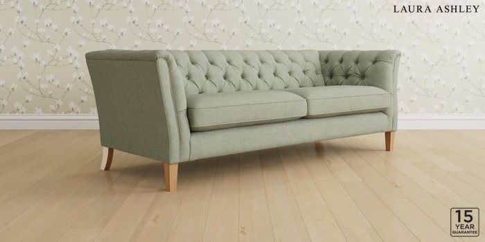 6.12.1 Buy Chatsworth Button Back by Laura Ashley 4 Seater Sofa Anneliese Sage Green Straight Mid - Light Oak from the Laura Ashley online shop Click here to use our website with more accessibility support, for example screen readers