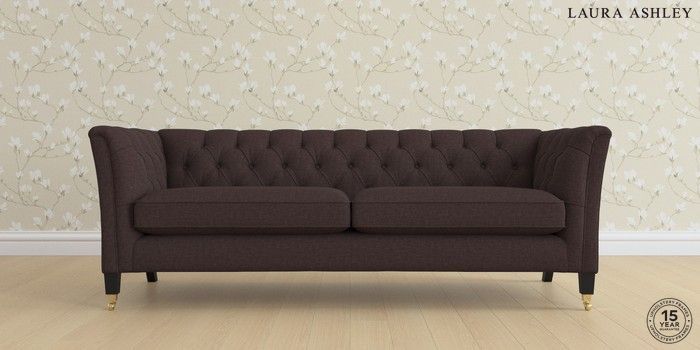 7.0.3 Buy Chatsworth Button Back by Laura Ashley 4 Seater Sofa Bainton Chocolate Brown Straight Brass Castor - Black from the Laura Ashley online shop Click here to use our website with more accessibility support, for example screen readers
