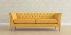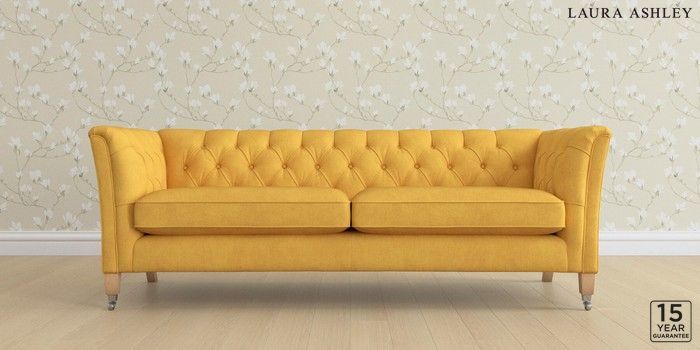 6.12.13 Buy Chatsworth Button Back by Laura Ashley 4 Seater Sofa Bainton Ochre Yellow Straight Chrome Castor - Light Oak from the Laura Ashley online shop Click here to use our website with more accessibility support, for example screen readers