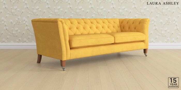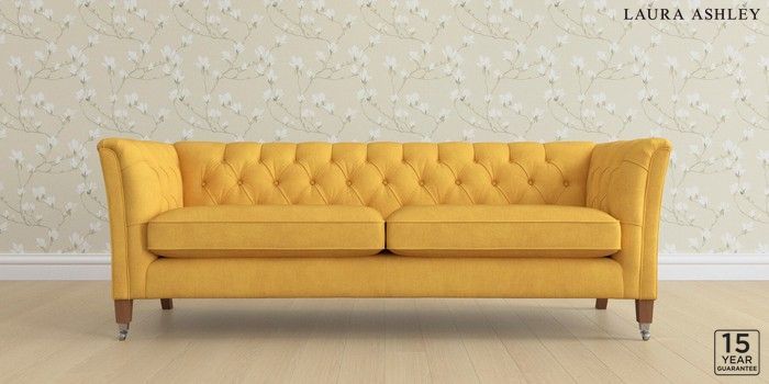6.12.1 Buy Chatsworth Button Back by Laura Ashley 4 Seater Sofa Bainton Ochre Yellow Straight Chrome Castor - Teak from the Laura Ashley online shop Click here to use our website with more accessibility support, for example screen readers