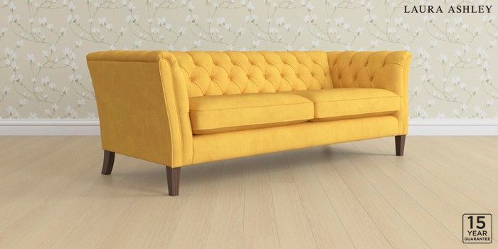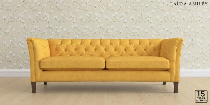 6.12.1 Buy Chatsworth Button Back by Laura Ashley 4 Seater Sofa Bainton Ochre Yellow Straight Mid - Chestnut from the Laura Ashley online shop Click here to use our website with more accessibility support, for example screen readers