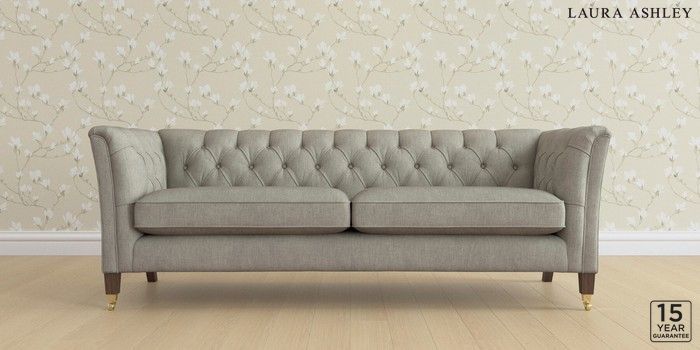 6.12.13 Buy Chatsworth Button Back by Laura Ashley 4 Seater Sofa Bainton Pale Steel Grey Straight Brass Castor - Chestnut from the Laura Ashley online shop Click here to use our website with more accessibility support, for example screen readers