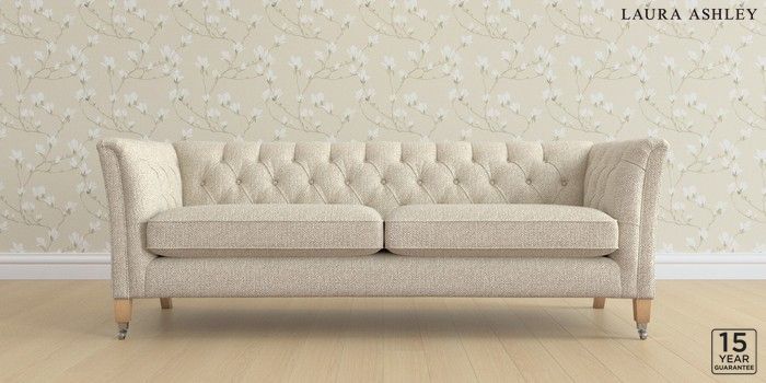6.12.1 Buy Chatsworth Button Back by Laura Ashley 4 Seater Sofa Borwick Natural Straight Chrome Castor - Light Oak from the Laura Ashley online shop Click here to use our website with more accessibility support, for example screen readers