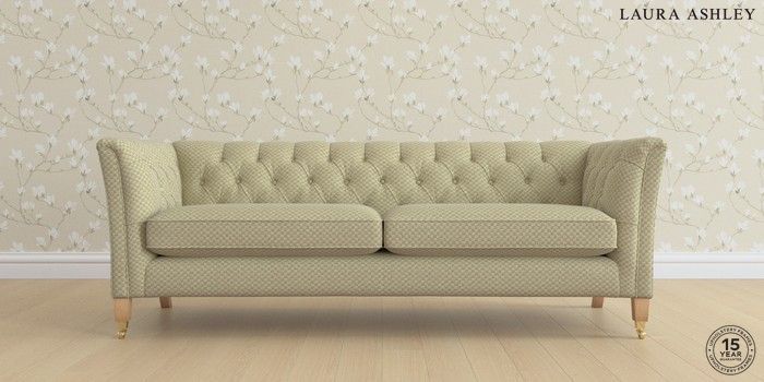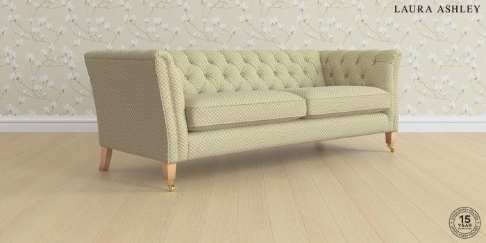 6.12.1 Buy Chatsworth Button Back by Laura Ashley 4 Seater Sofa Chequers Hedgerow Green Straight Brass Castor - Light Oak from the Laura Ashley online shop Click here to use our website with more accessibility support, for example screen readers