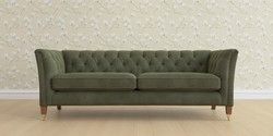 6.12.1 Buy Chatsworth Button Back by Laura Ashley 4 Seater Sofa Edwin Chenille Hedgerow Green Straight Brass Castor - Teak from the Laura Ashley online shop Click here to use our website with more accessibility support, for example screen readers