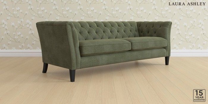 6.12.13 Buy Chatsworth Button Back by Laura Ashley 4 Seater Sofa Edwin Chenille Hedgerow Green Straight Mid - Black from the Laura Ashley online shop Click here to use our website with more accessibility support, for example screen readers
