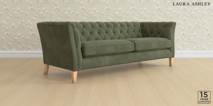 6.12.1 Buy Chatsworth Button Back by Laura Ashley 4 Seater Sofa Edwin Chenille Hedgerow Green Straight Mid - Light Oak from the Laura Ashley online shop Click here to use our website with more accessibility support, for example screen readers