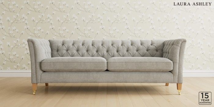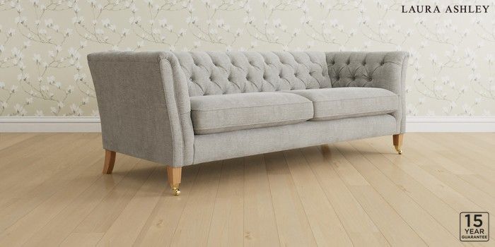 6.12.13 Buy Chatsworth Button Back by Laura Ashley 4 Seater Sofa Edwin Chenille Silver Grey Straight Brass Castor - Light Oak from the Laura Ashley online shop Click here to use our website with more accessibility support, for example screen readers