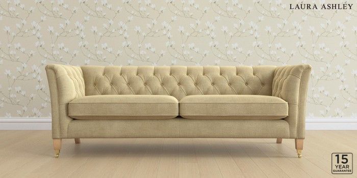 6.12.1 Buy Chatsworth Button Back by Laura Ashley 4 Seater Sofa Edwin Chenille Truffle Natural Straight Brass Castor - Light Oak from the Laura Ashley online shop Click here to use our website with more accessibility support, for example screen readers