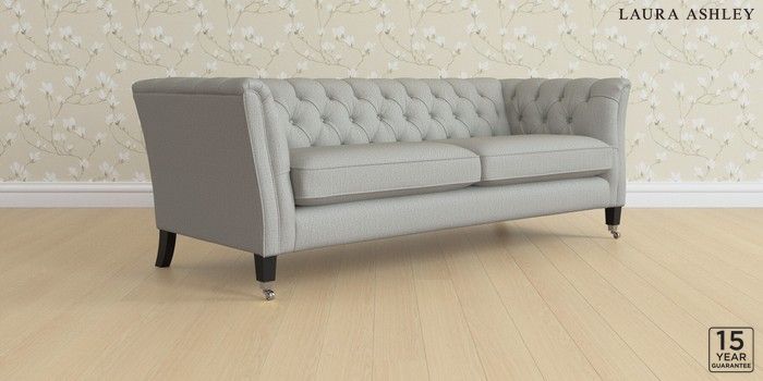 6.12.1 Buy Chatsworth Button Back by Laura Ashley 4 Seater Sofa Edwin Herringbone Pale Steel Grey Straight Chrome Castor - Black from the Laura Ashley online shop Click here to use our website with more accessibility support, for example screen readers