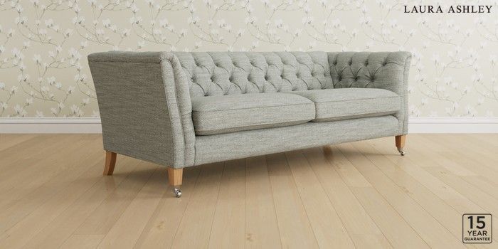 6.12.1 Buy Chatsworth Button Back by Laura Ashley 4 Seater Sofa Harley Dove Grey Straight Chrome Castor - Light Oak from the Laura Ashley online shop Click here to use our website with more accessibility support, for example screen readers